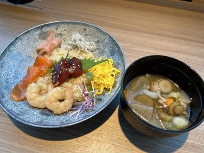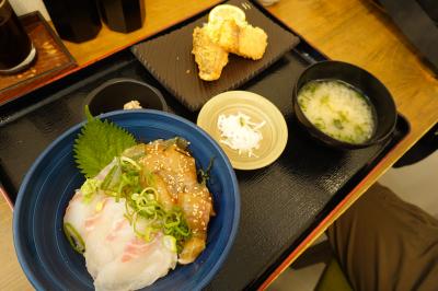 ちなみに、活まだい二種丼(1,200円)を注文したダンナさんは 活まだいふらいセット(+350円)を追加、白飯を鯛めし(+110円)にしていました。