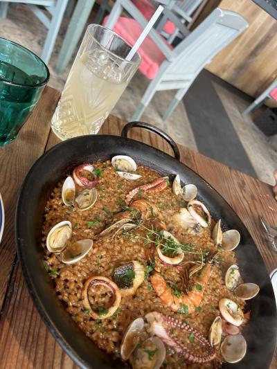 あまり食べたことがないパエリア相手にモタモタしていたら(;^ω^)スタッフさんが「ここがおいしいんですよ」と鍋のおこげをとってくれました。
