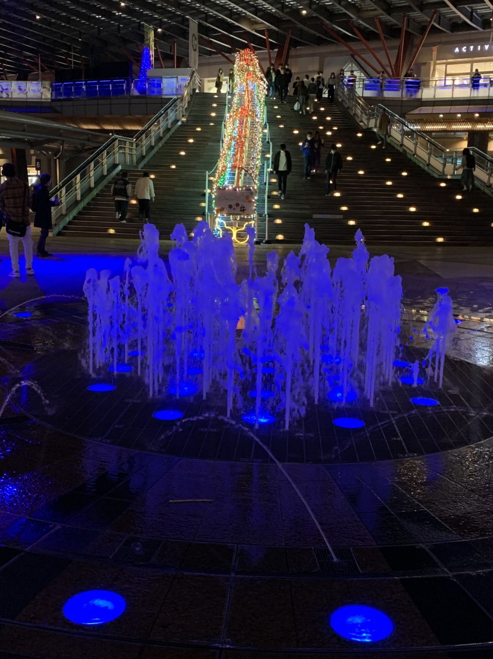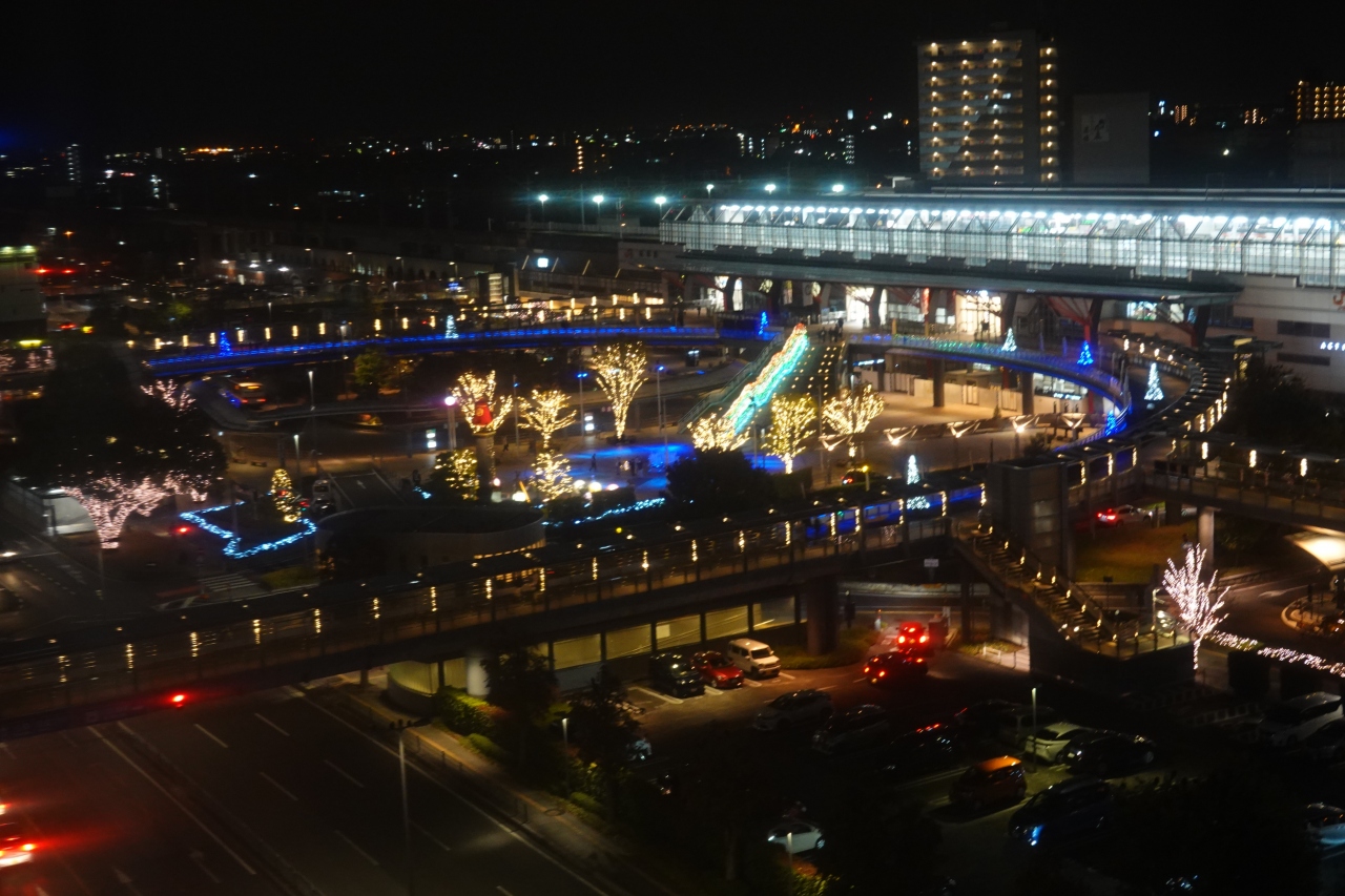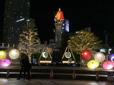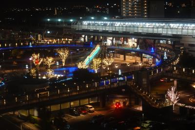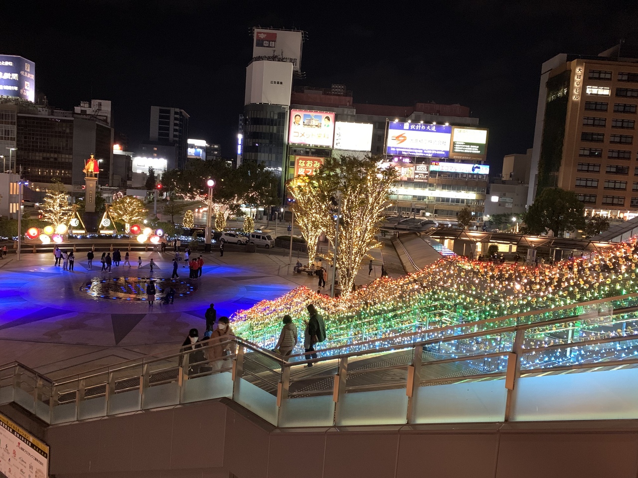 駅近くのホテルに宿泊した日、たまたま イベント「駅とまちをつなぐ杜のイルミネーション」(2022.11.18~2023.3.12 日没から22時まで)を開催中。