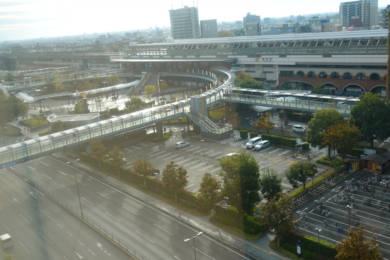 - エレベーターであがってペデストリアンデッキをつかえば JR岐阜駅まで3分くらい