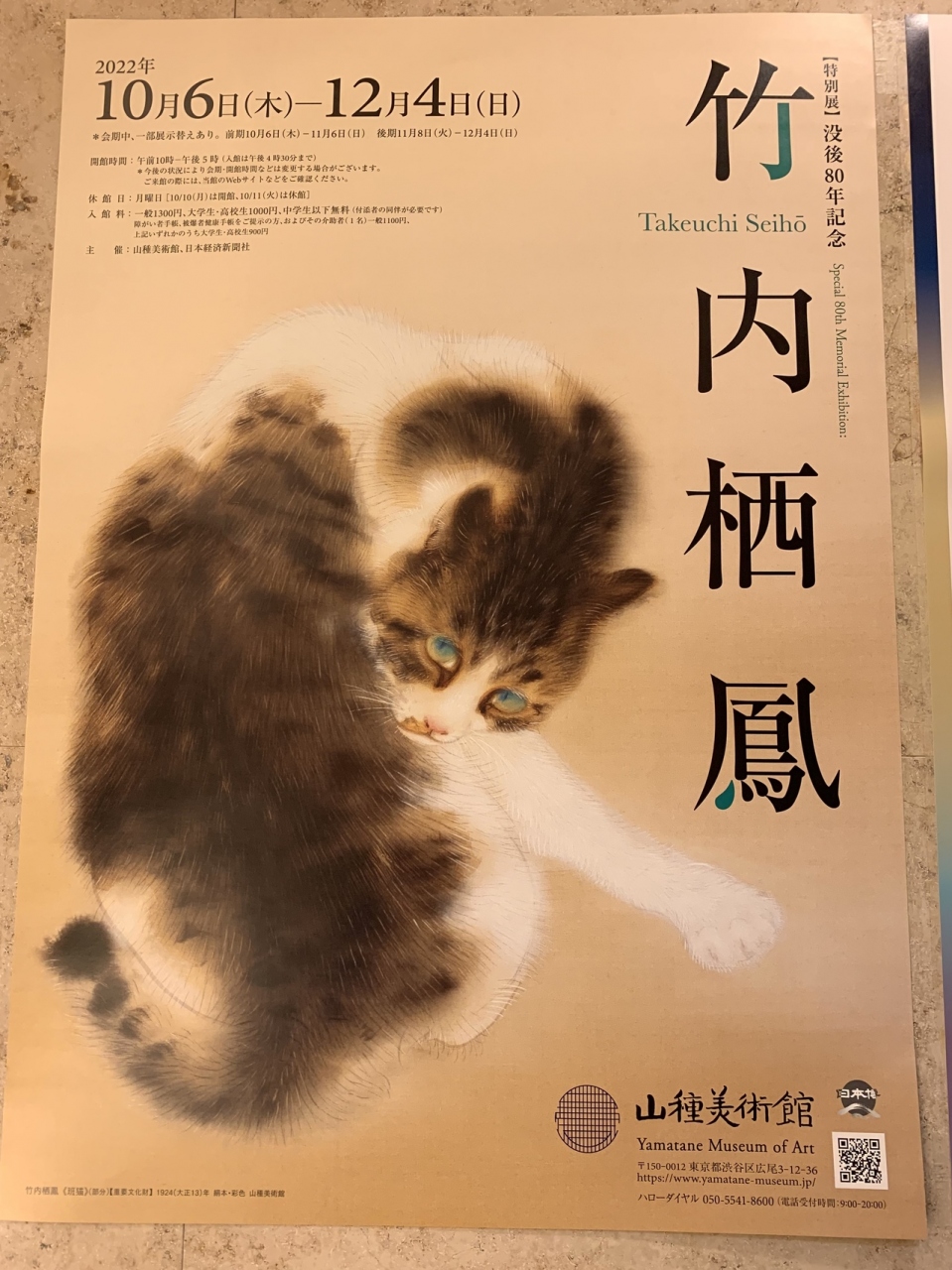 12/4(日)までは「【特別展】没後80年記念 竹内栖鳳」を開催中で、代表作「班猫」を見たなら「モフモフ可愛らし~♪ あら、私の視線を感じて警戒してる?」と思ってしまったほど。
