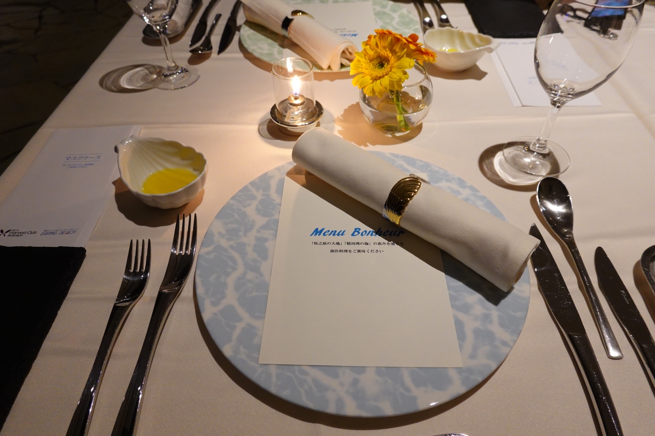 予約が遅かったためか 窓際の特等席ではありませんでしたが、横浜ロイヤルパークホテル68階にあるレストランですから 天気がよければ富士山も見えるようです。