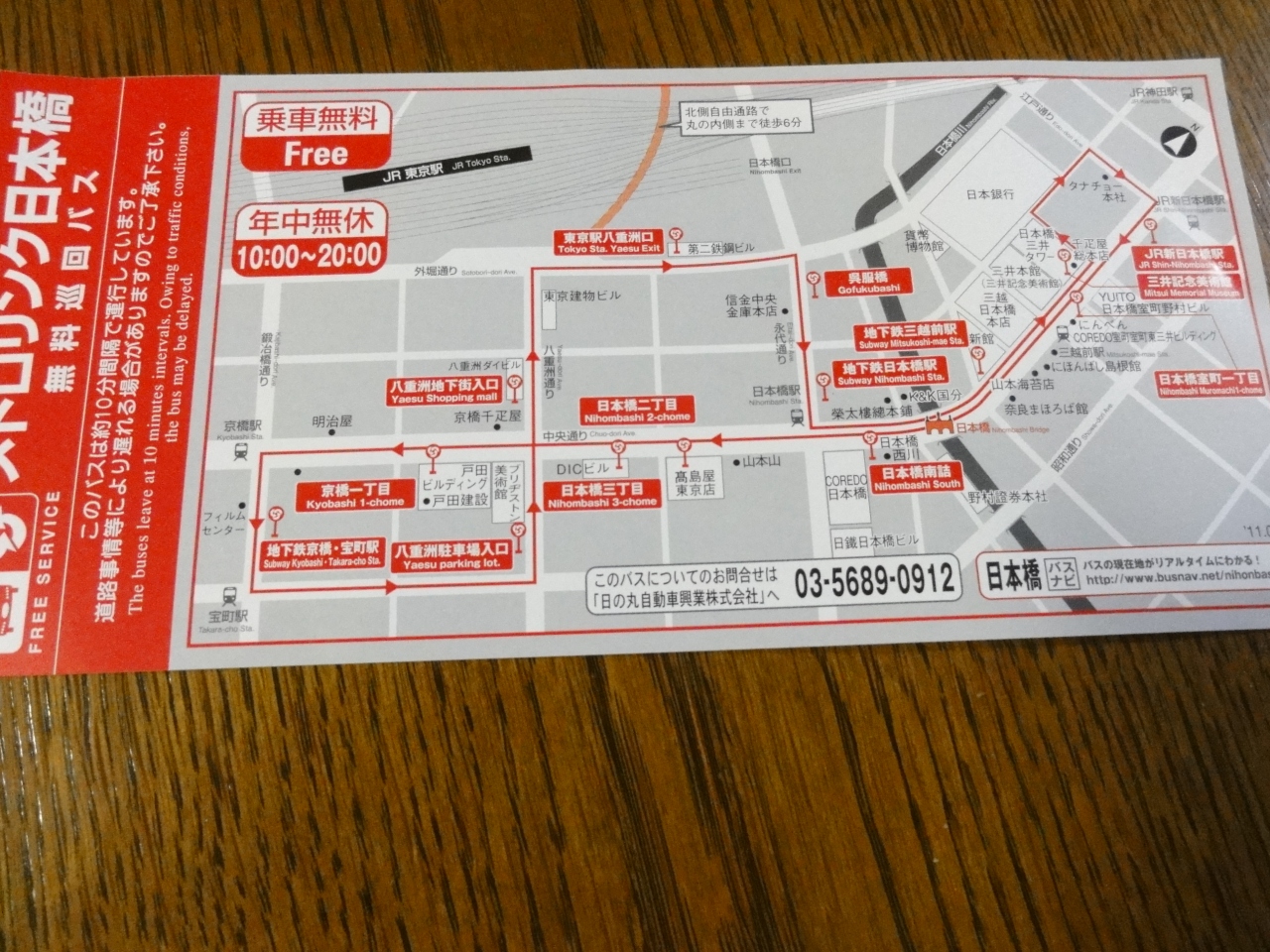 日本橋から丸の内まで地下鉄とJRを乗り継いでお金と時間を使ったけれど、メトロリンク日本橋という無料巡回バスで東京駅八重洲口まで移動することができたと知りました。