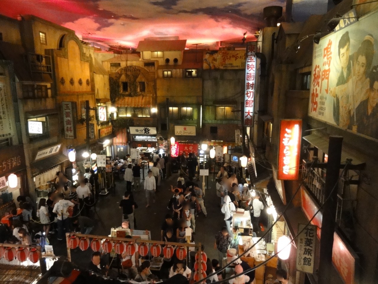 暮れなずむ空 昭和の街並みの中、全国のラーメンを食べることができます。
