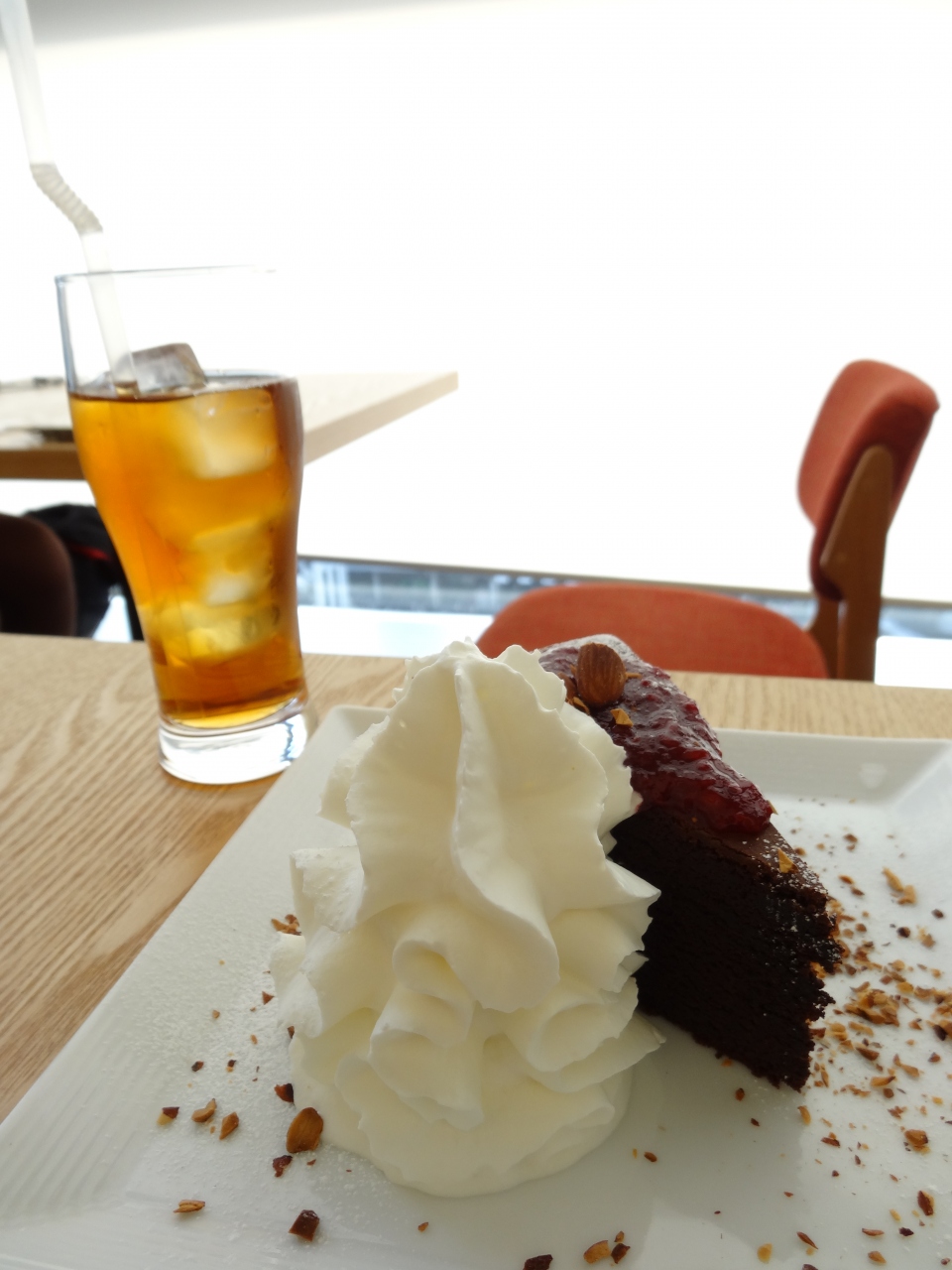 汐留店限定のあったかい抹茶フォンダンショコラとつめたいアイスの組み合わせ♪