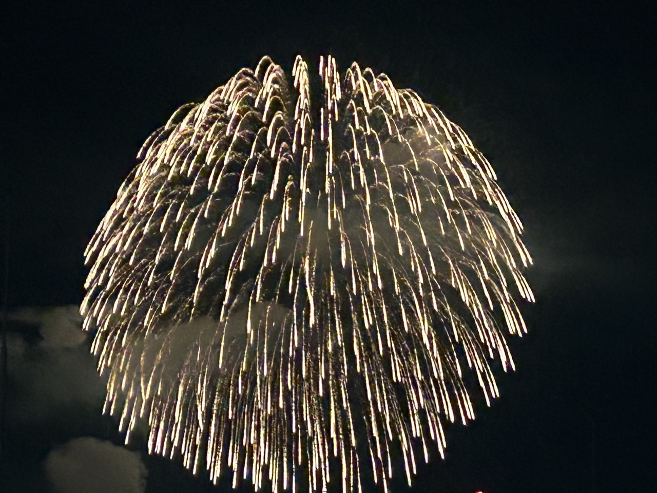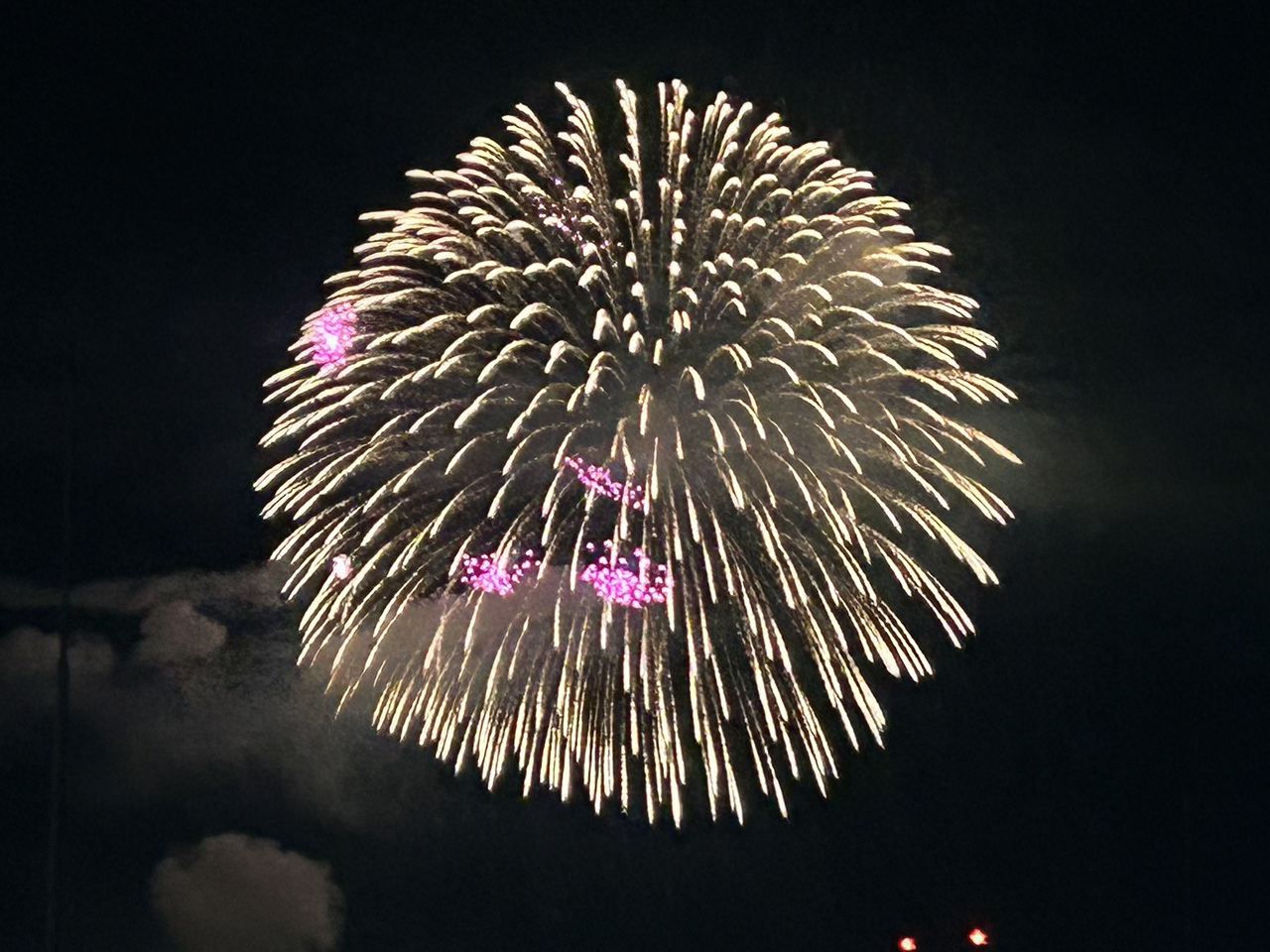 が、早めの夕食後 最上階の部屋もどったところ、高くあがる大玉(だけ)が見えるではありませんか!