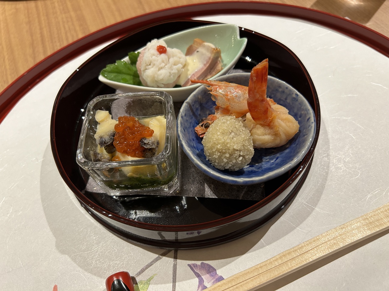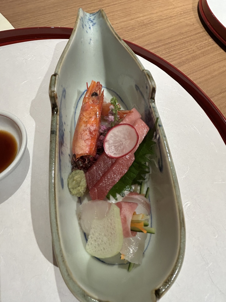 鮑と伊勢海老が次々でてくる楽しい食事でしたが、なにげにお造りが美味しかった。(笑)