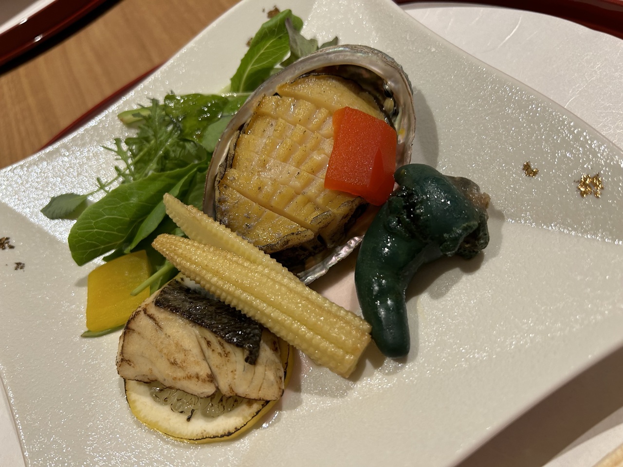 今回は「鮑 伊勢海老会席2食付きプラン」での宿泊で、ディナー・朝食ともにこちらでいただきました。