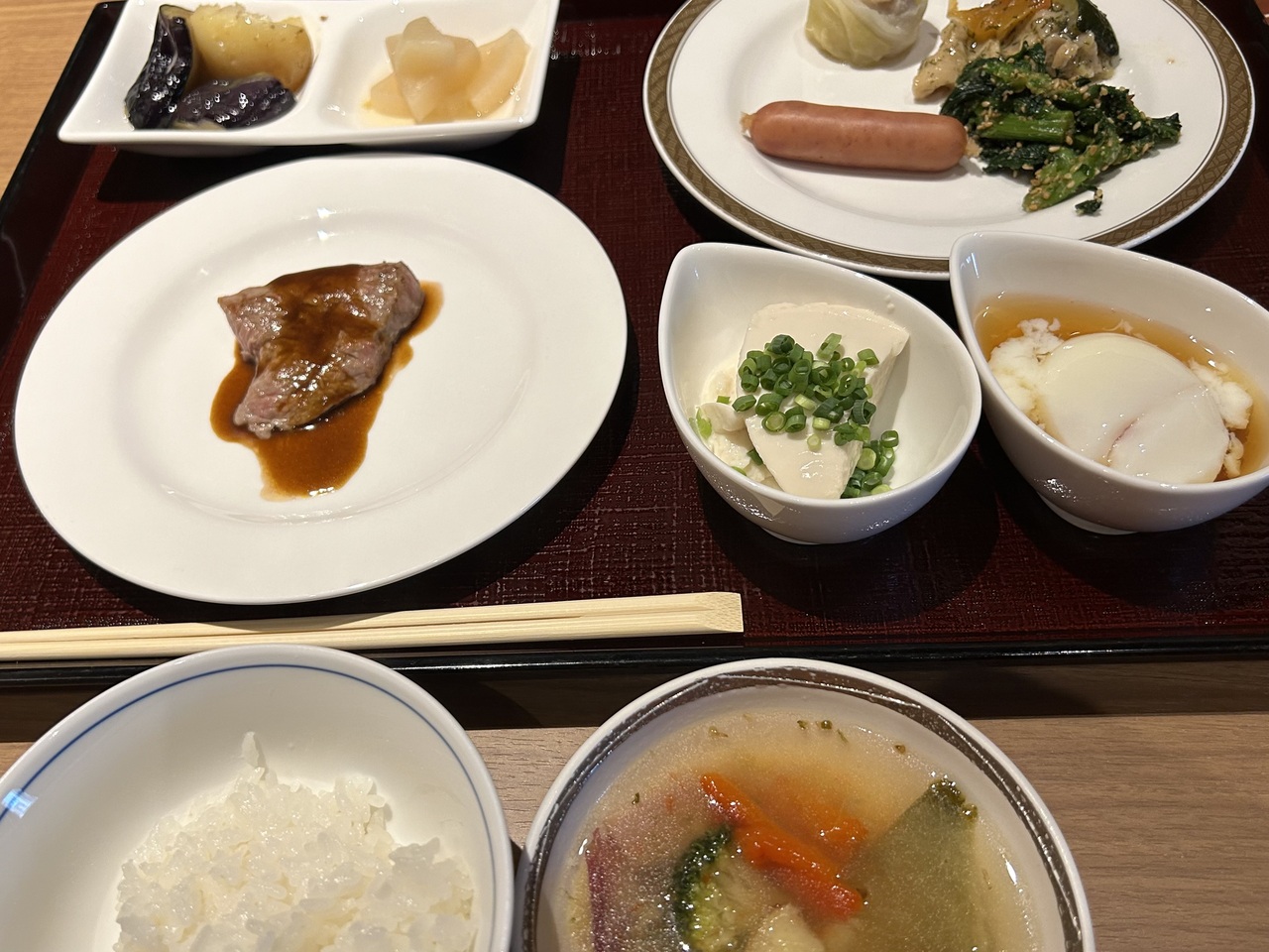 朝食ブッフェの日替わり特別メニューはステーキでした。- 旅行時期