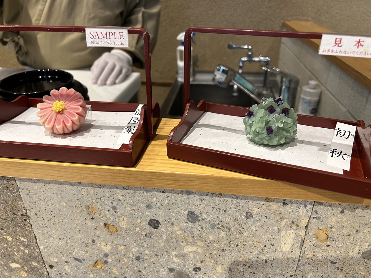 菓子職人さんが目の前で形作ってくれる生菓子と抹茶をいただけるカウンター席 菓遊茶屋(メニューは抹茶と生菓子 1,650円のみ)