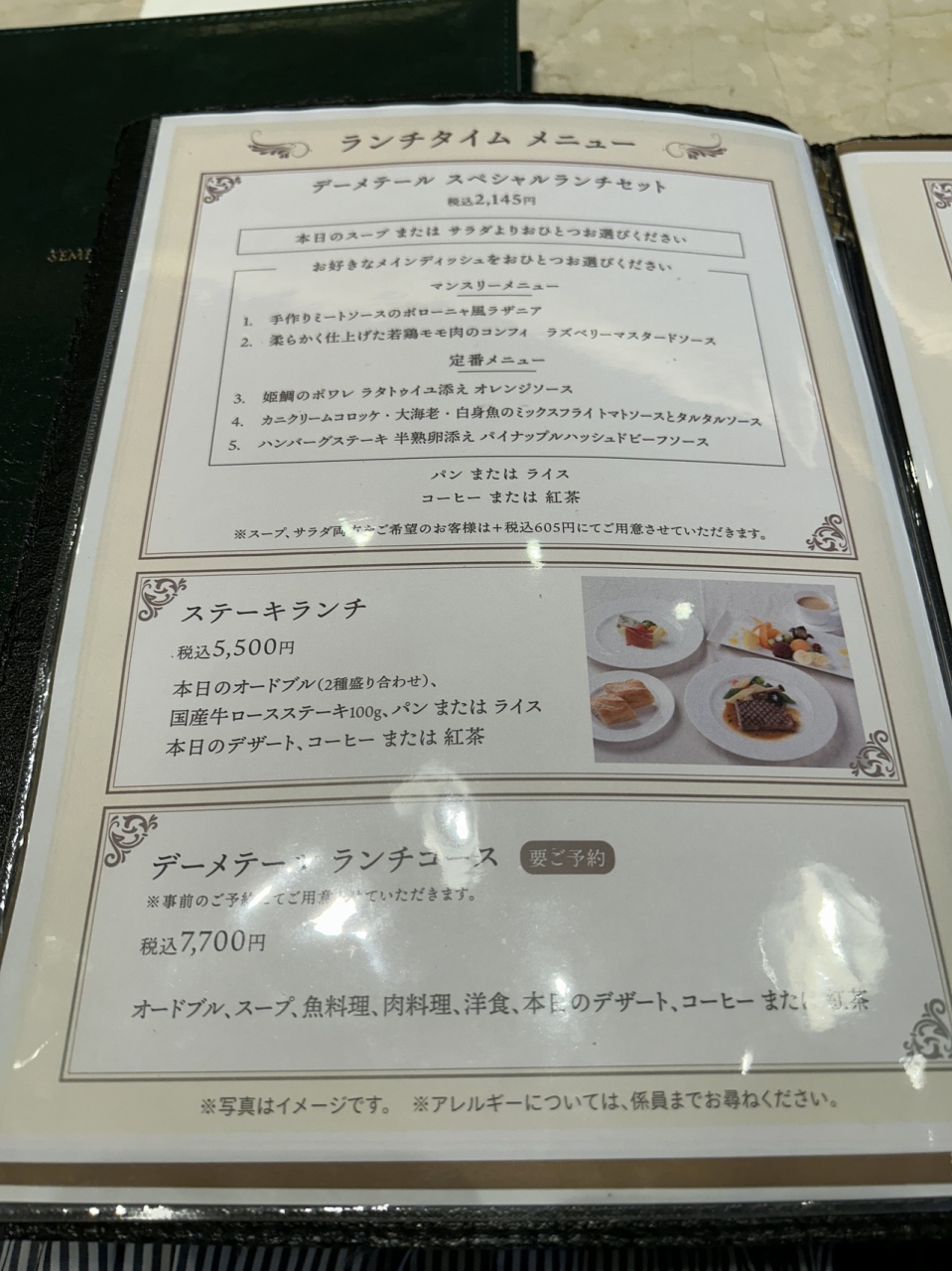 アフタヌーンティービュッフェ(希望があれば スリーティアーズも貸してくれるそうです)が人気のようですが、スイーツメインで食べ続けることが難しいお年頃、ランチビュッフェ(5,500円税サ込)にうかがいました。
