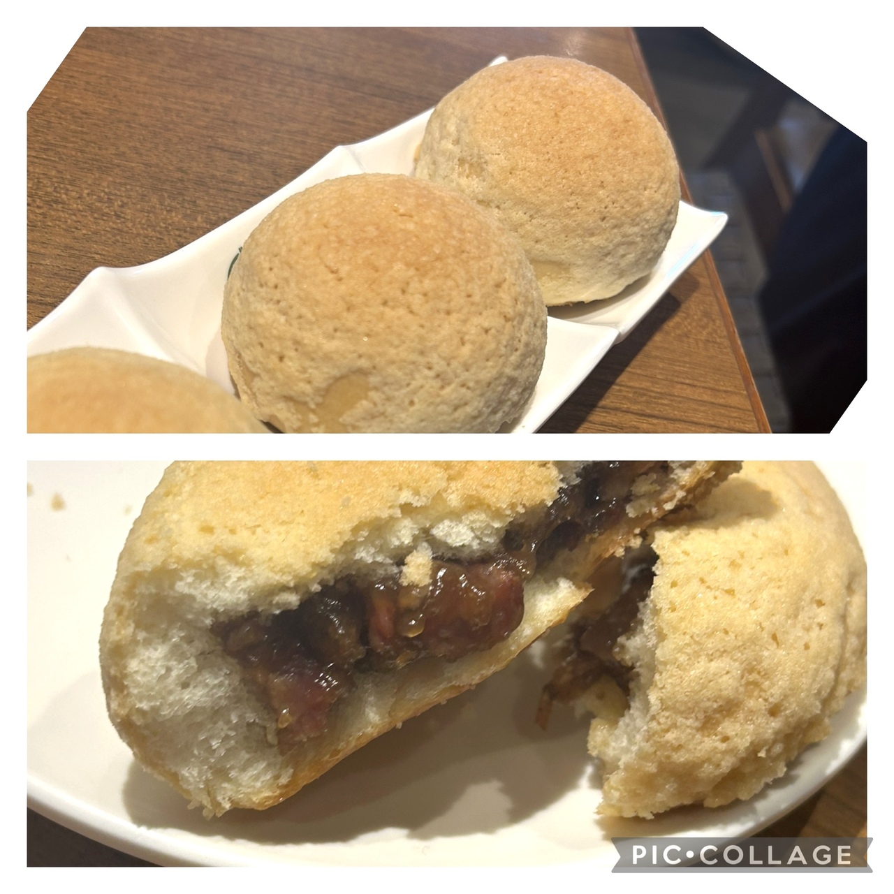 代表メニューの甘めチャーシュー餡をメロンパンぽい生地で包んだベイクドチャーシューバオ他5品たのんでお腹いっぱい♪