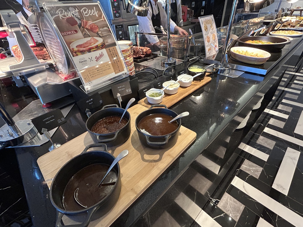 - ローストビーフの他、たくさんのお料理が並びます