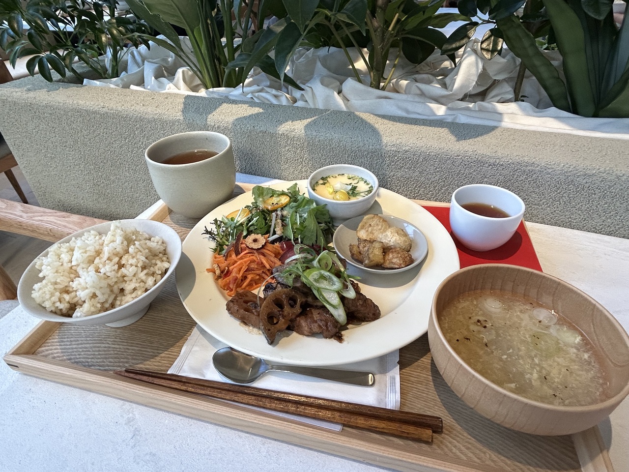 メニューは多くないけれど、グリーンに囲まれたステキ空間でのお茶は癒しの時間でした。
