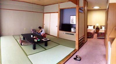 合宿として大学の学部生と研究室の院生と先生と一緒に温泉旅行に行きました。一つの部屋に二人いますが、部屋は和室+洋式ベッドでした。すごく広かったです!ただし、温泉の質はあまり良くなくて、普通の風呂みたいです。