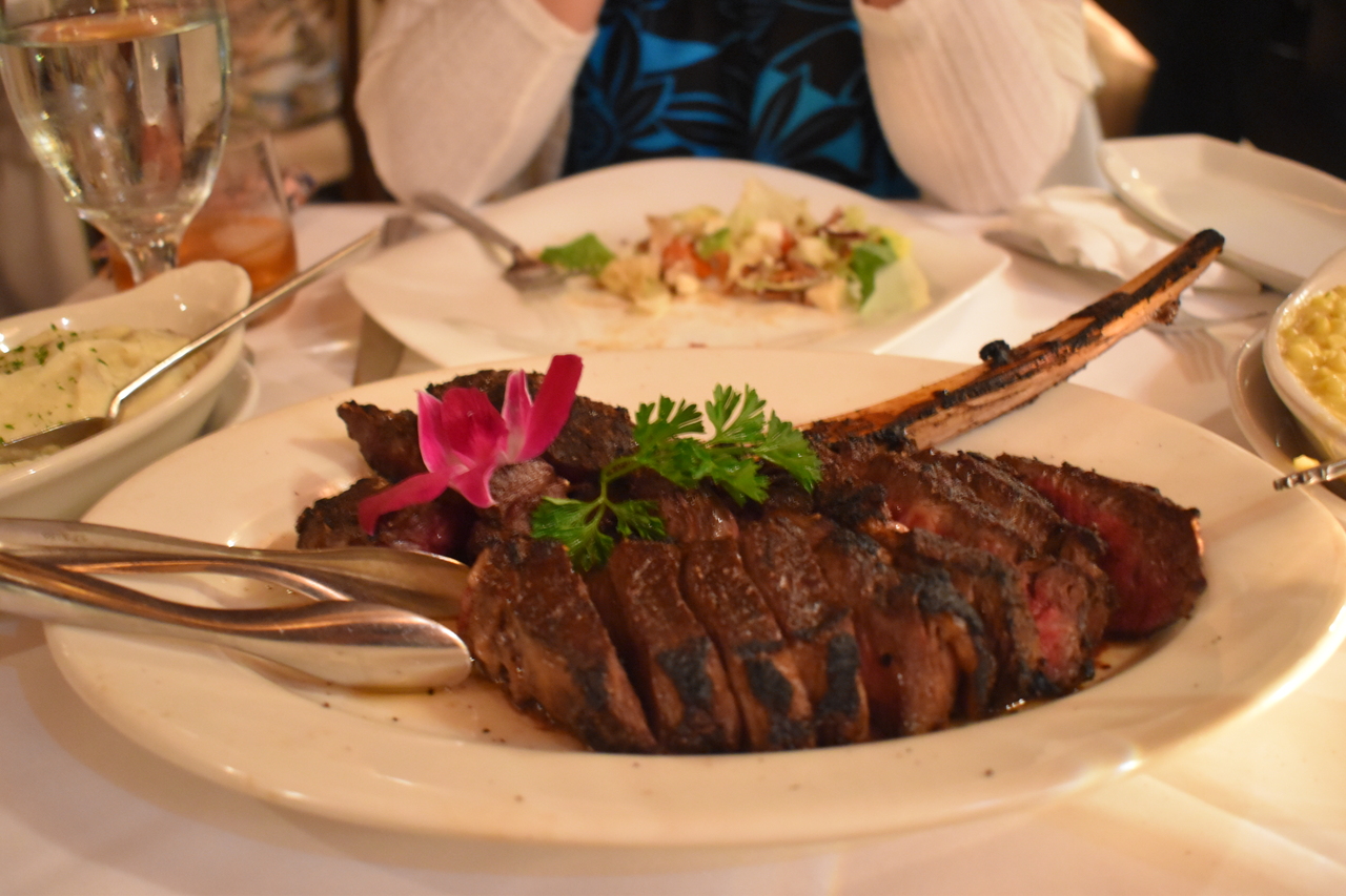 トマホークステーキも見た目に反して柔らかくて食べ易いです。焼き方はミディアム以上をオススメします。