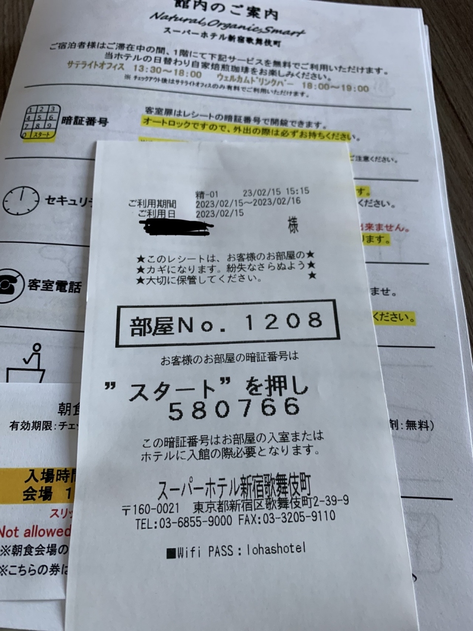 部屋のキーは9ボタン式です、チェックインの際にもらう紙を無くさないようにしましょう!