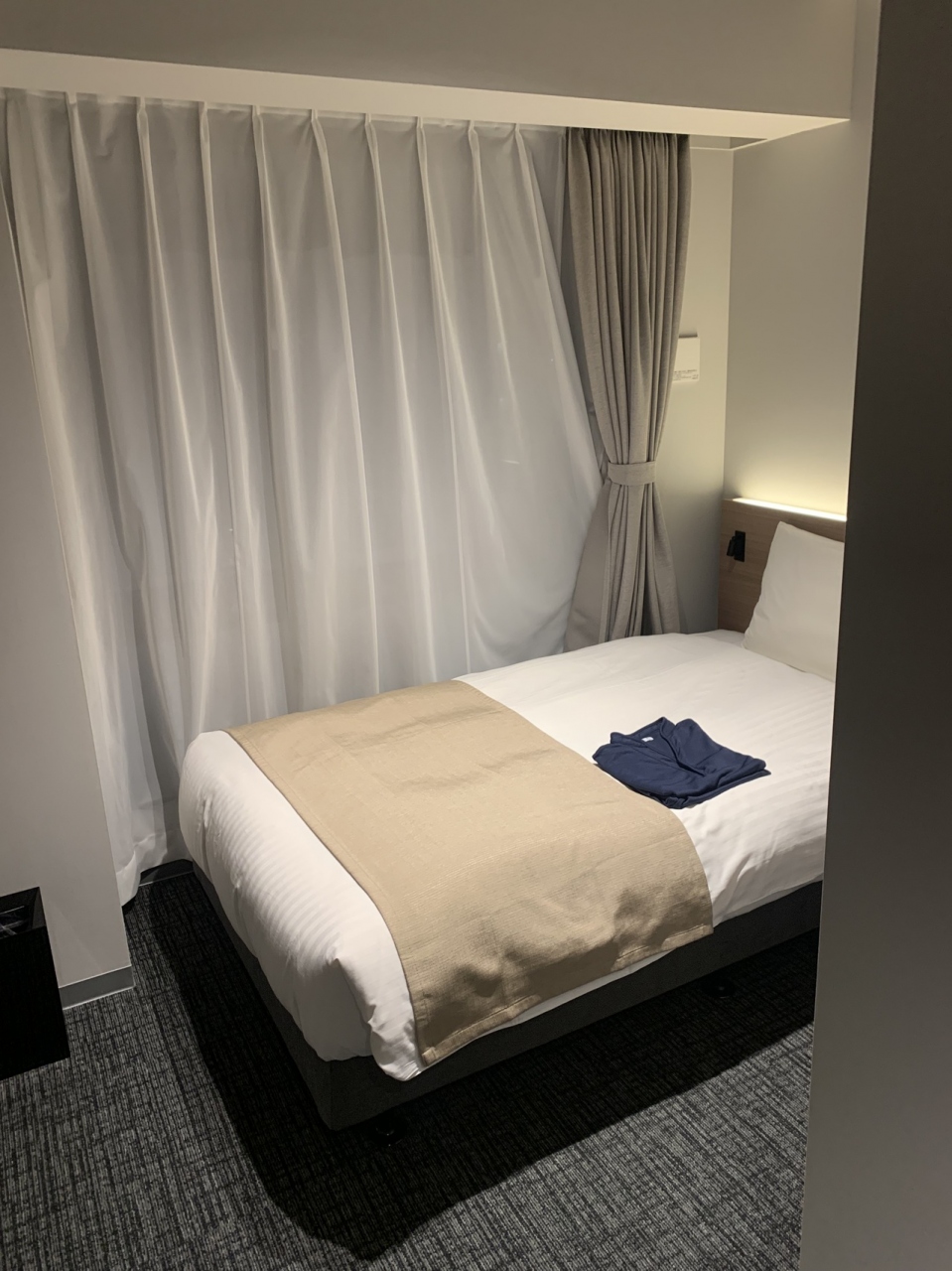 部屋も無駄がないというか、宿泊に徹しているという感じです(枕元にコンセントはあります)