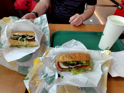 機内食の時間まで時間があるので、残った現金消化も兼ねてサブウェイでエネ...