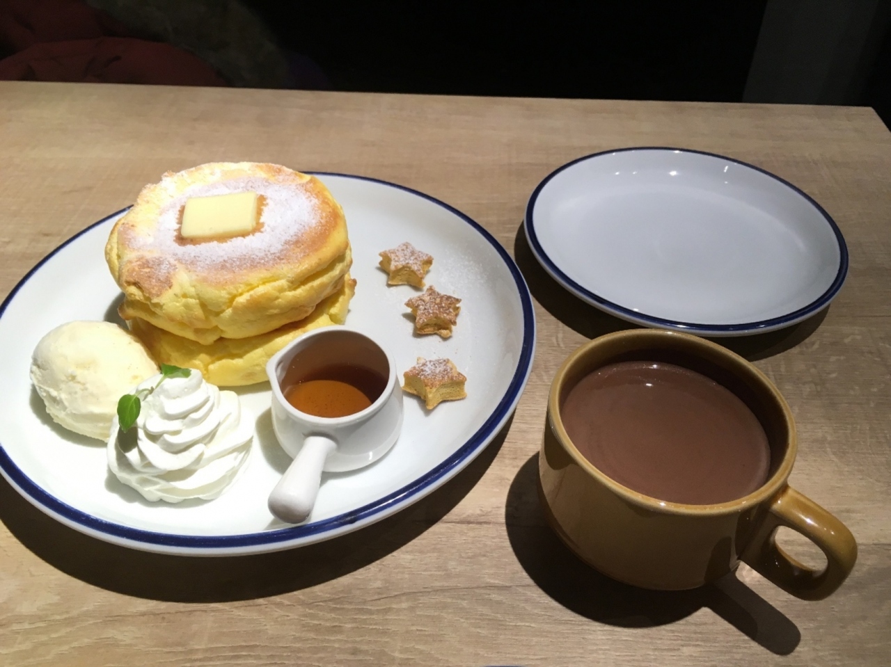 一番スタンダードなパンケーキとホットチョコレートを注文。