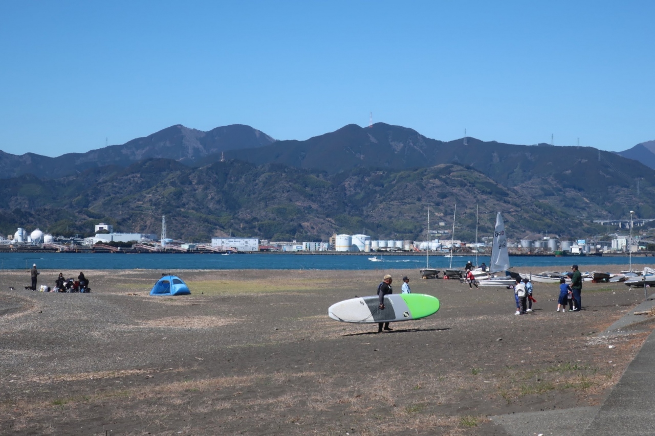 JR清水駅から自転車を借りて三保松原観光をしている際に立ち寄りました。折戸湾沿いに続くハーバーブルーラインという自転車道沿いにあります。ハーバーブルーラインは海水浴場手前くらいで一旦途切れ、この先に進んでも大丈夫なのかな?という感じになっているのですが、進んで大丈夫です。その先も道は続いています。水上バスで来る人は、水上バスが着く桟橋のすぐお隣です。春先だったにもかかわらず、マリンスポーツをする人々で賑わっていました。