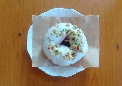 みさきまぐろきっぷのおもひで券を使うために訪れました。こちらのお店ではオリジナルトートバックとお好きなドーナツ1つとドリンクと引き換えることができます。お茶をしたかったのですが、あいにく食後でおなかがいっぱいだったので、ドーナツはテイクアウトすることにしました。賞味期限は2日ということなので、翌朝でもおいしくいただくことができました。