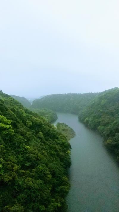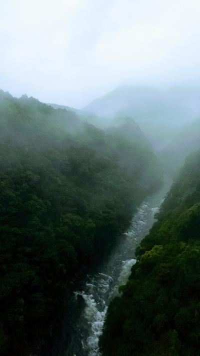昼頃まで降っていた雨が上がったので、翌日のトレッキングに備えてウォーミングアップしようとヤクスギランドに向かいました。安房の街からは車で30分くらいで、最初は2車線の良い道路なのですが、途中からは急に狭くなり、工事をしているところもあったりして、「え?本当にこの先にメジャーな観光スポットがあるの?」と疑いたくなるような感じでした。