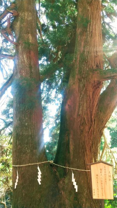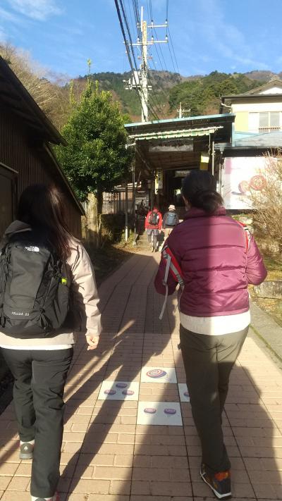 12月の土曜日に訪れました。お天気が良かったせいか、紅葉シーズンを外したつもりだったのに、登山道はすごい人込みでした。登山口に入ってすぐの急で狭い階段を抜けたあと、急な坂道に入ってからもずっと人の列がつながり、立ち止まることも、ペースを落とすこともできない感じでした。この夫婦杉のところに少しだけ立ち止まることができるスペースがあったので、漸く列から抜け出すことができました。登り始めて15~20分くらいの場所にある、最初の休憩スポット(全然広くはないし、座ることもできませんが)になりました。