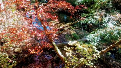 見晴台の紅葉やそこからの眺めももちろん見事だったのですが、遊覧歩道のあちこちで赤や黄色、オレンジと色とりどりの紅葉が目を楽しませてくれました。