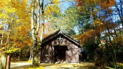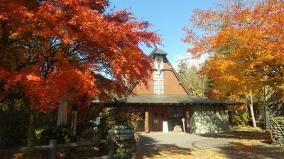 旧碓氷峠見晴台から遊覧歩道を歩いて下山すると、ちょうどショー記念礼拝堂のところに出てきます。訪れた時期は11月初旬だったのですが、見晴台も、遊覧歩道も、礼拝堂付近も全て紅葉が盛りで、とてもきれいでした。