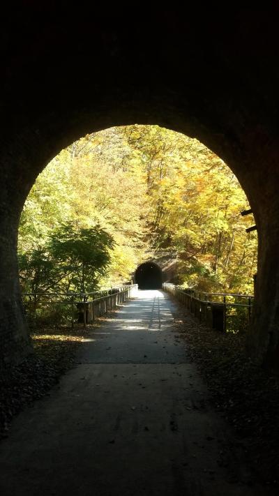 旧熊ノ平駅から先はいくつものトンネルをくぐり抜けることになり、非常に冒険心がくすぐられる上、トンネルの出口ではきれいな紅葉が出迎えてくれ、ワクワクが止まりません。