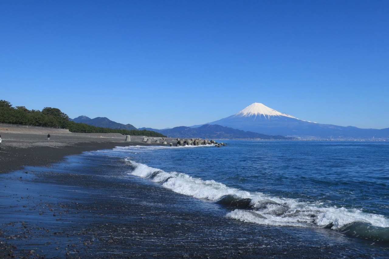 三保松原海岸では、羽衣の松近くの海岸や鎌ケ崎に観光客が集まっていますが、私のおすすめは八木地先と呼ばれる富士山眺望地です。看板等が出ていないので、Gマップのナビ頼りで向かい、最終ポイントはGマップでもずれているのではないかと思います。Gマップのナビで近くまで行って、段丘のある海岸を慎重に降りて行き、その近くで一際海に突き出した場所が八木地先ではないかと思います。綺麗に弧を描いた美しい海岸線と松林越しの富士山を見ることができます。人が少ない穴場スポットです。