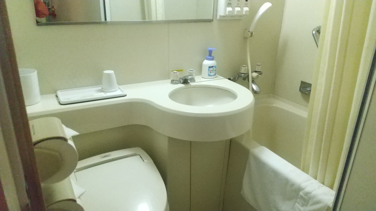 お部屋のユニットバスも広めですが、共同浴場があって、私はそちらを利用しました。きれいで、広々していて、気持ちがよかったです。