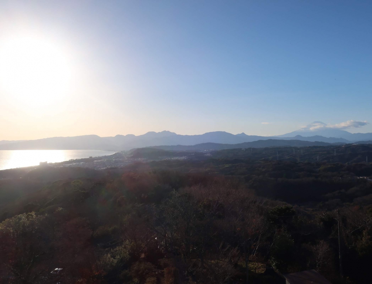私は湘南平の方から尾根道のハイキングコースを通って高来神社に向かいました。湘南平からしばらくはファミリー向けの緩やかなコースですが、高麗山に近づくにつれ、少し道が険しくなってくるので注意が必要です。高麗山から高来神社へと下山する道は女坂、男坂に分かれていて、私は女坂を選びましたが、それでもやや急なところがありました。下山途中、高来神社にほど近いところに、眺望の素晴らしいスポットがありました。高来神社の裏の登山口から少し登ったところなので、高来神社を訪れた際はぜひ行ってみてください。