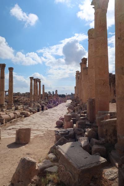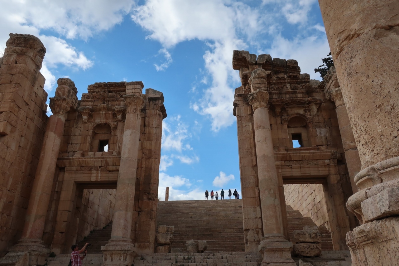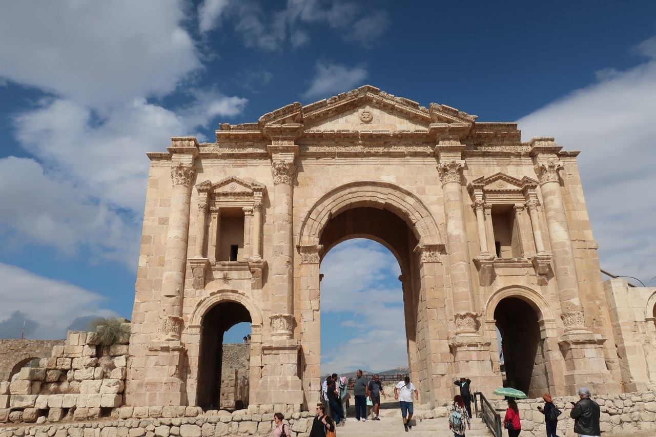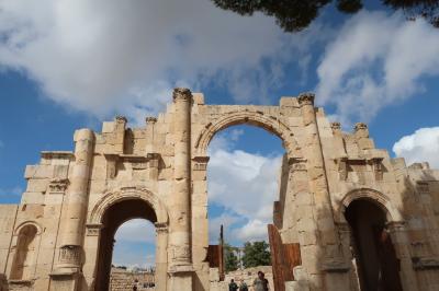 アンマンの北50kmのところにあるジェラシュ遺跡の一番入口付近にある門です。紀元後129年に時の皇帝ハドリアヌスが訪れた記念に建てられたました。このハドリアヌスの門とその先の競馬場までは無料エリアになるので、チケットなしでも見ることができます。