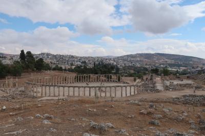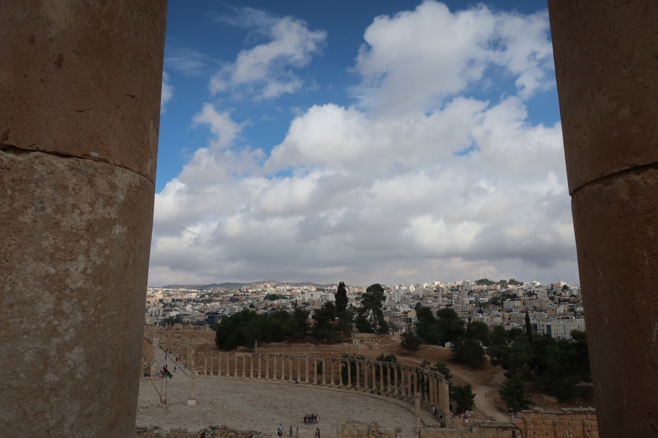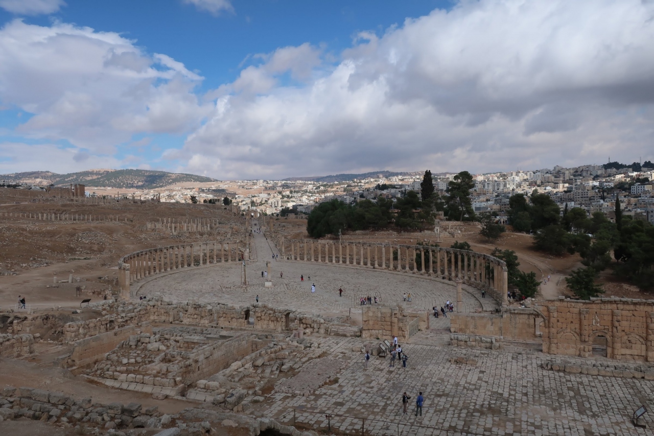 ジェラシュ遺跡の南門から入場してすぐのところにある大きな広場です。周囲にはゼウス神殿や南劇場があって、この広場の奥から列柱通りが続いています。広場にいると大きすぎて全体は見えにくいですが、ゼウス神殿に登ると全体像が見渡せます。