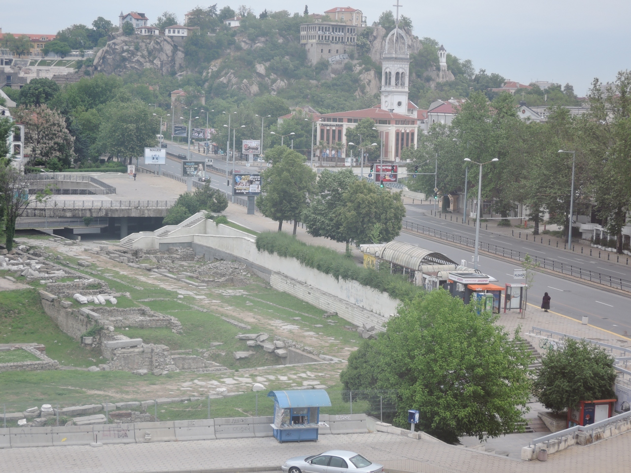 隣は公園で、発掘中の遺跡も近くにあり、