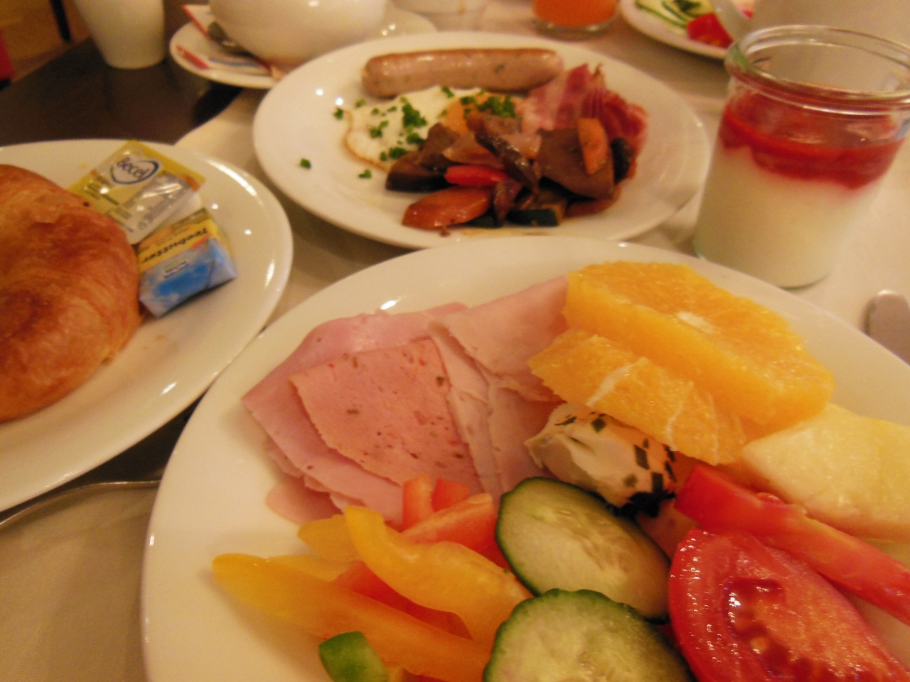 また、朝食のビュッフェはハム・ソーセージ、チーズ、パンの種類も多く、