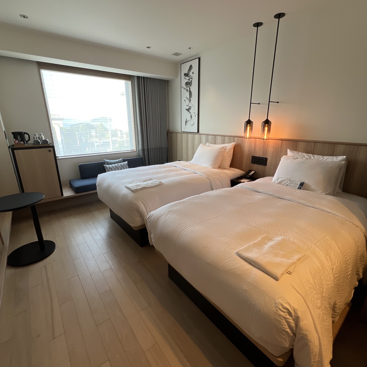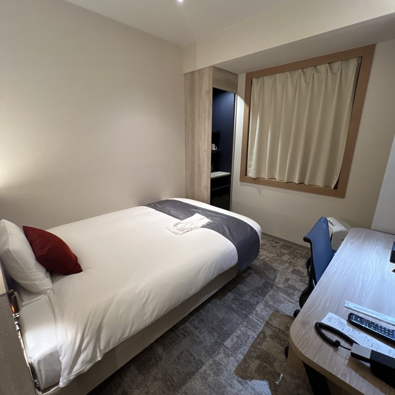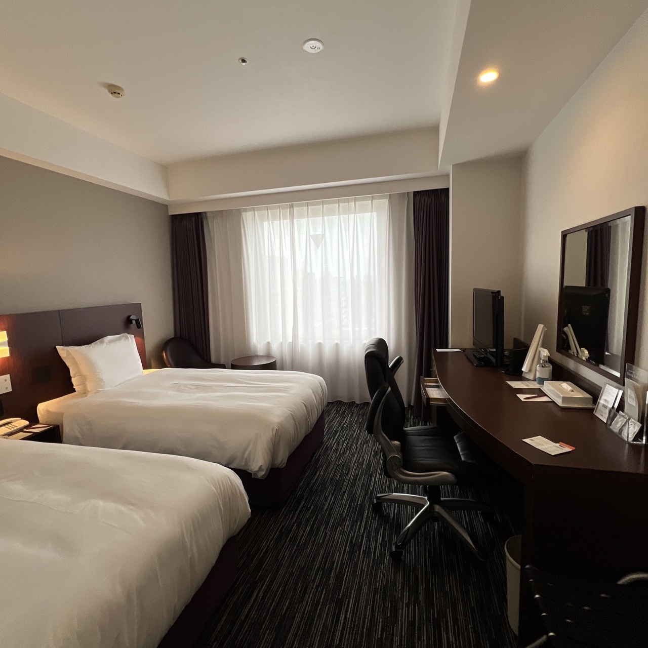 部屋は普通のビジネスホテルだと思いましたが、机が広く仕事が捗って良かった。- 旅行時期