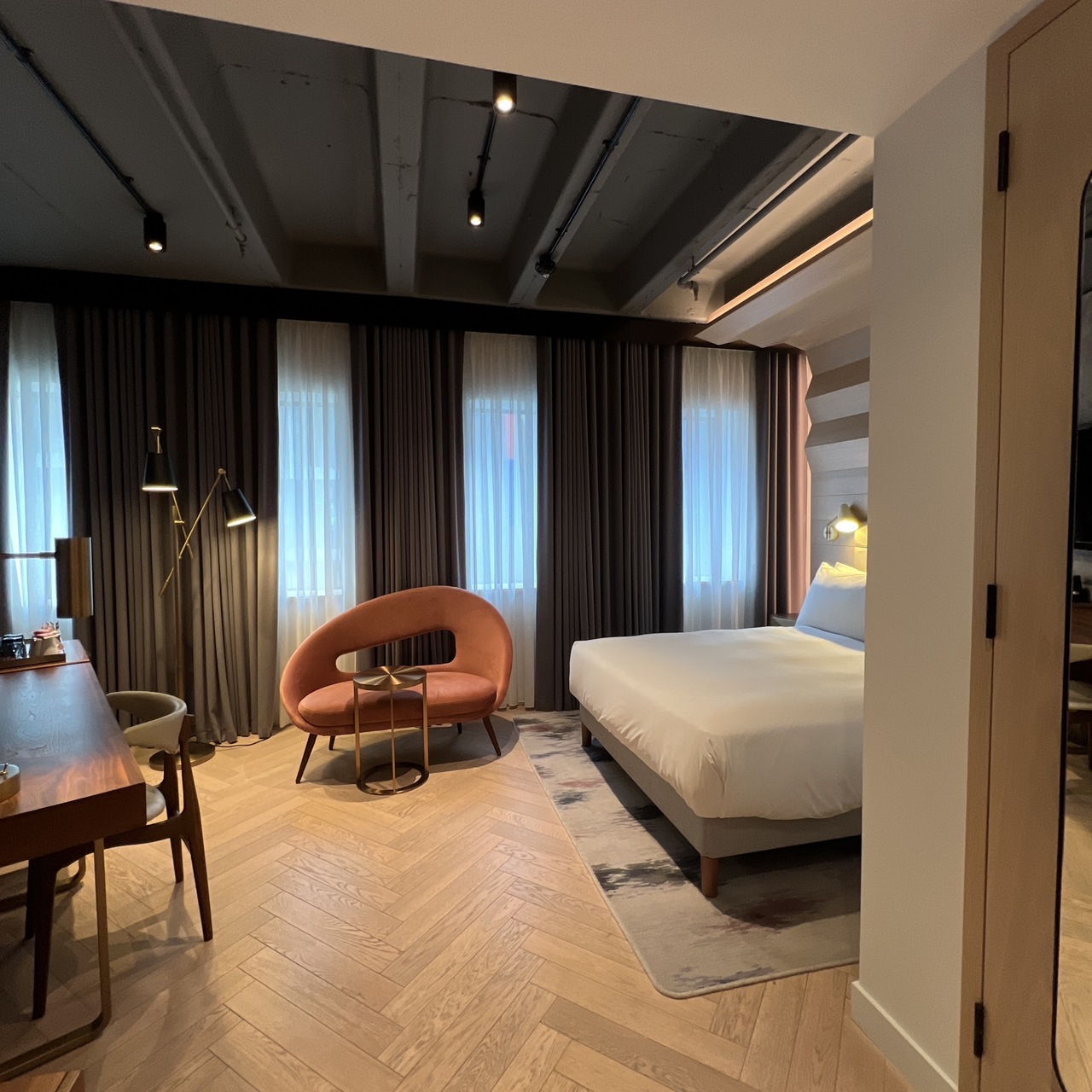 ブリュッセル中央駅の目の前、徒歩1分以内の超便利な立地にあります。グランプラスに近く、周辺にレストランがたくさんあり、同じ建屋にカルフールエクスプレスもあって、これ以上ないほどの便利さです。