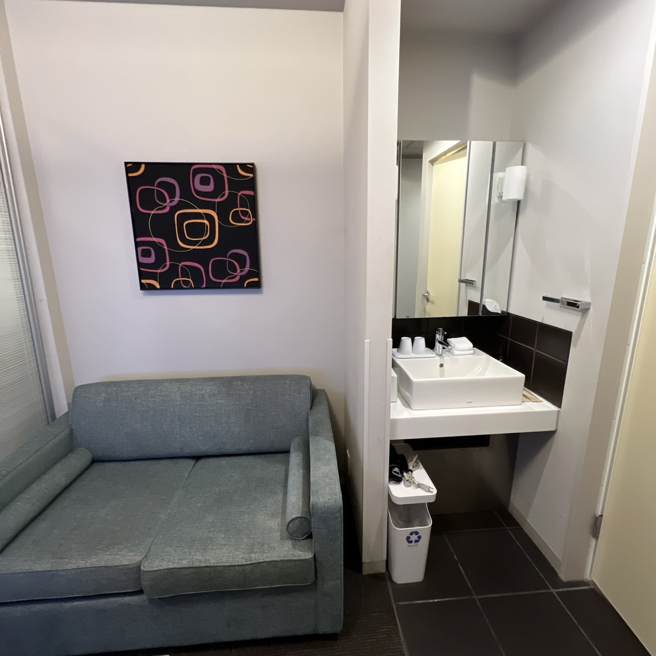 部屋面積が30m2以上で1万円以下、設備は比較的新しく、これだけ見ると破格のホテルですが、元はラ◯ホテルのようです。条件をよく見れば分かったでしょうが、ホテル予約サイトで見たときには分かりませんでした。