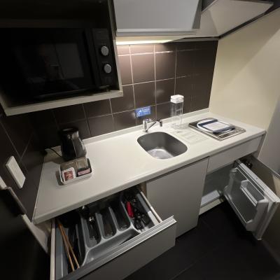 このホテルの周りにはいくつか飲食店があるので食事の心配は不要とおもいますが、ホテル内でインスタント食品が売られていて、電子レンジやお湯も準備されています。1Fに食事できる場所もあります。- 旅行時期
