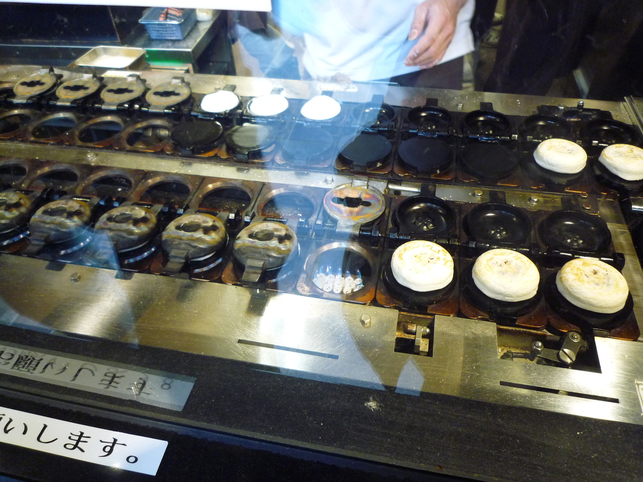 参道の途中の「かさの家」さんで、お土産を物色したり、梅ヶ枝餅を作る様子を眺めたり…