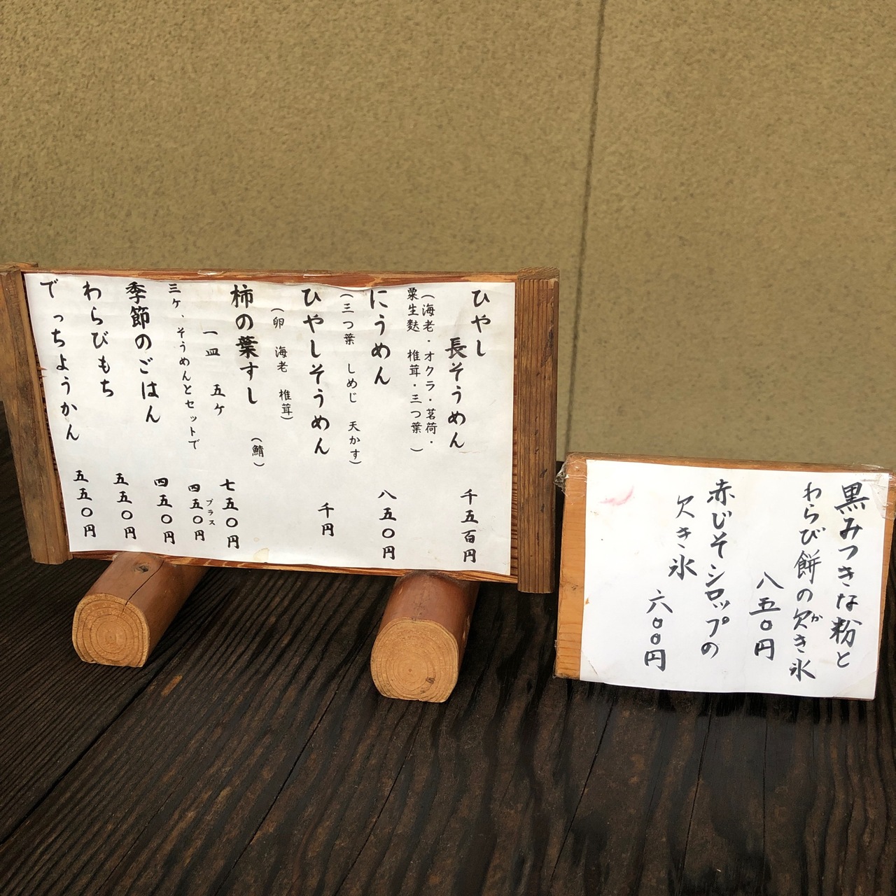 ひやし長そうめん、柿の葉寿司、わらび餅を注文して、妻とシェアしました。