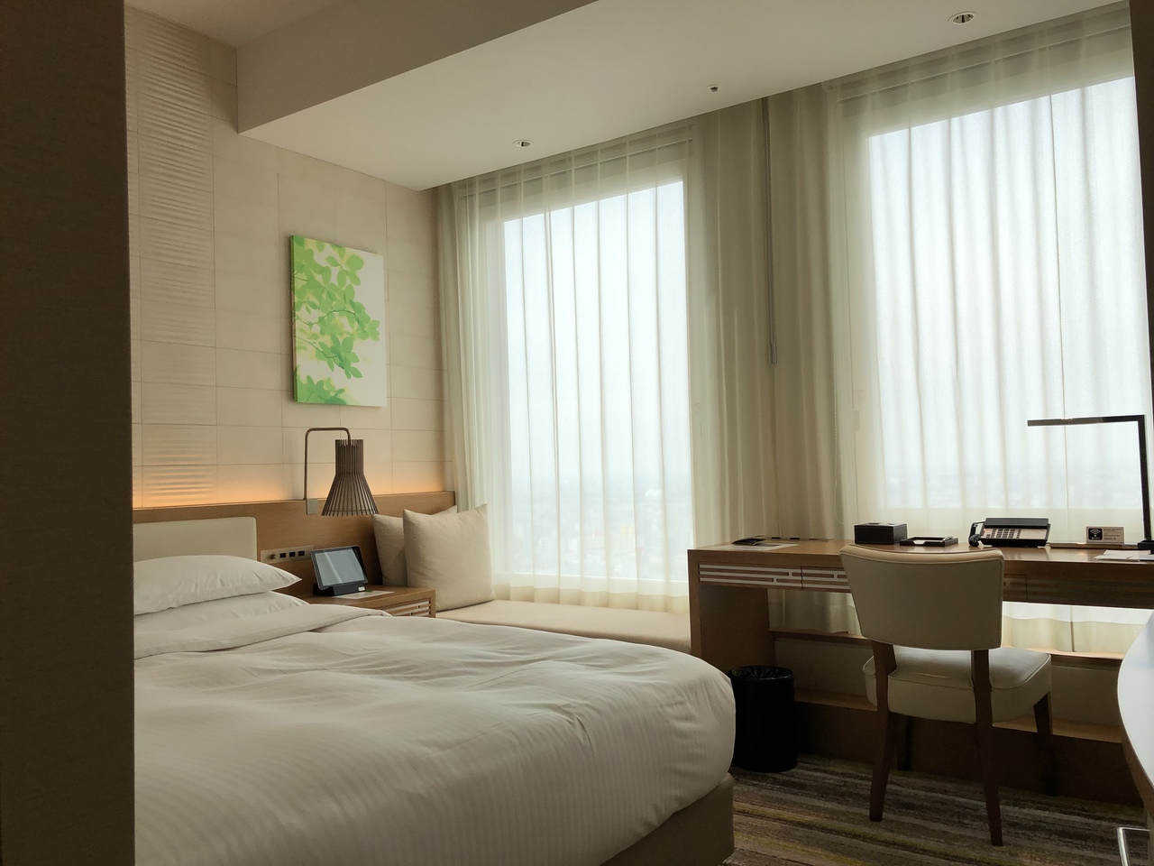名古屋JRゲートタワーホテルの北東角の部屋に宿泊しました。窓が大きくとられていて、非常に眺望が良く、開放感があります。新幹線の往来を見ているだけでも楽しいです。