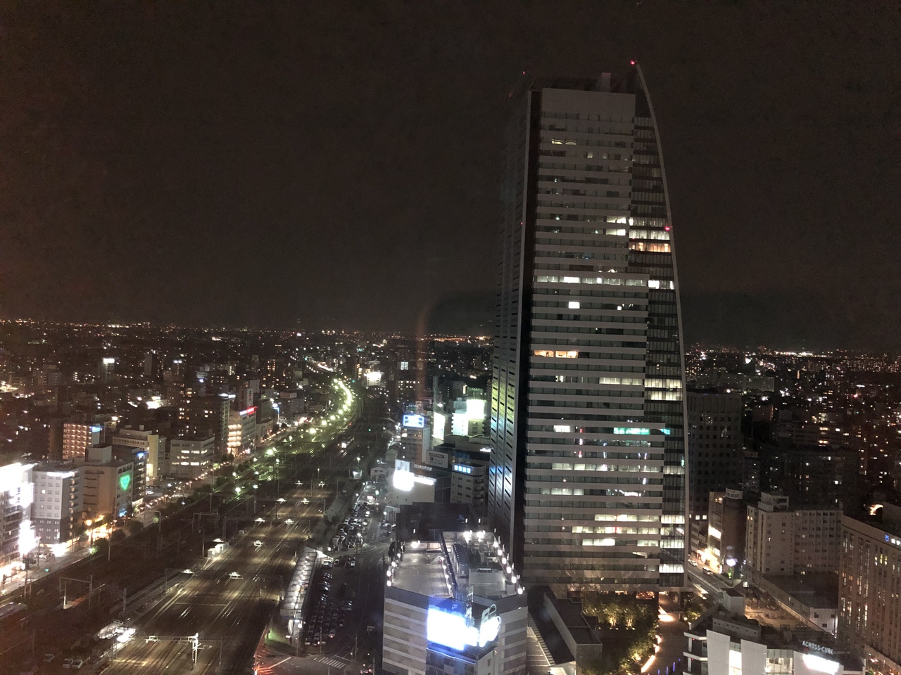 窓側の席にしてもらったので、名古屋の夜景を堪能できました。