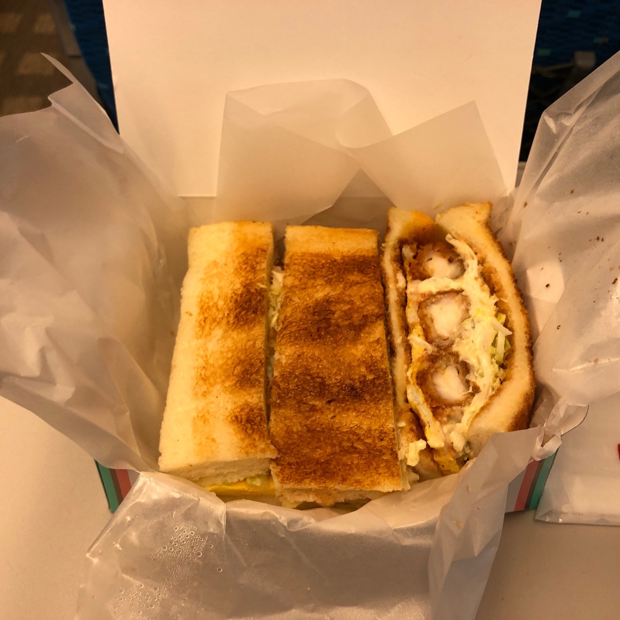 名古屋で宿泊したのでモーニングを楽しみにしていたのですが、不覚にも寝過ごしてしまいました。諦めきれないのでメイチカの「コンパル」さんへ走り、エビフライサンドをテイクアウト、新幹線に飛び乗りました。