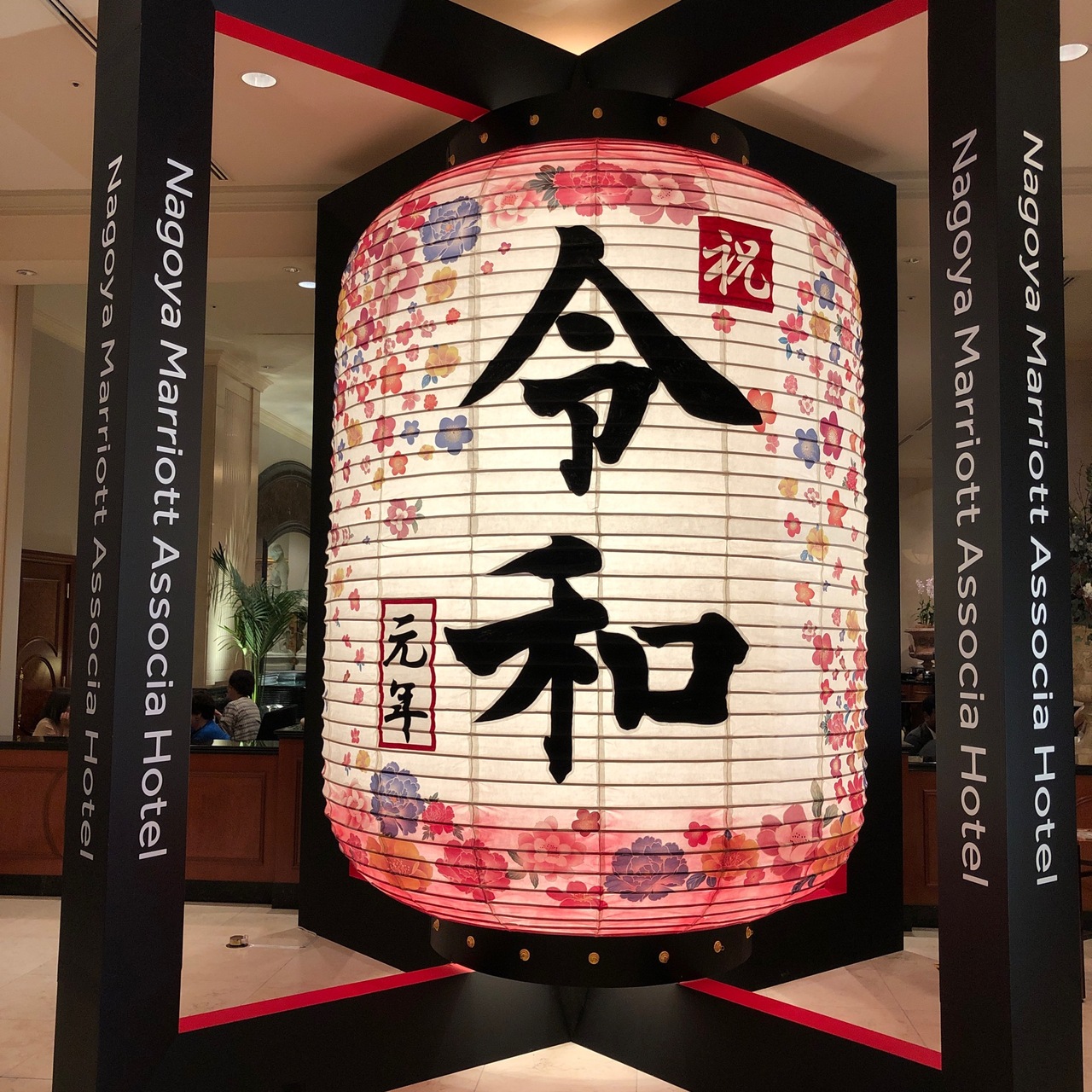 エントランス近くに、人より大きい令和の提灯が飾られていました。- 旅行時期