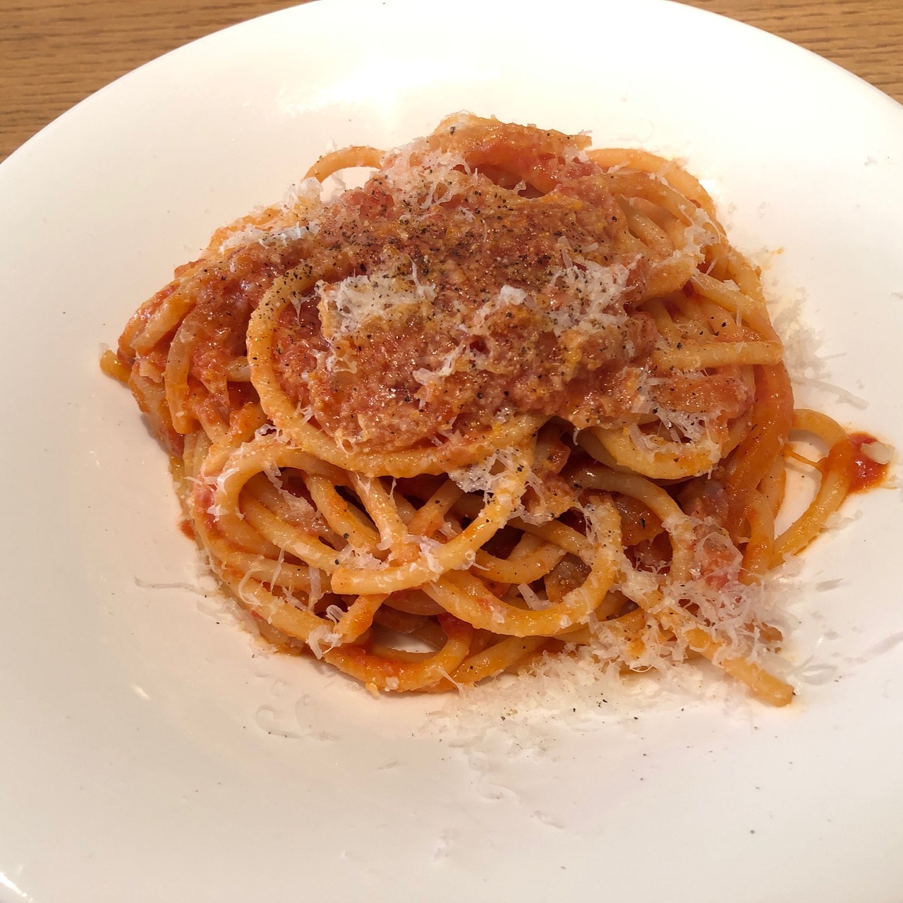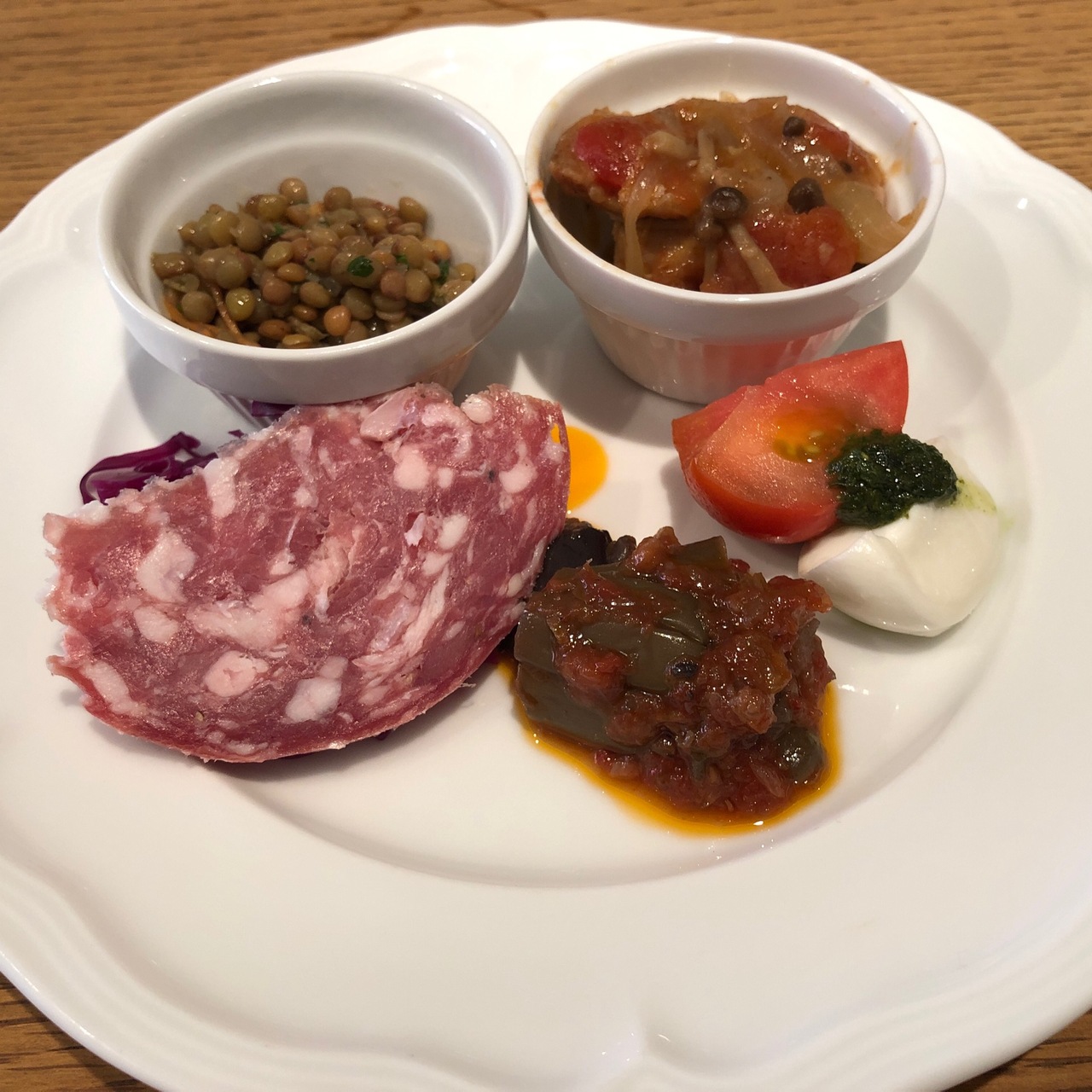 久しぶりにこのお店にランチを食べに来ました。Pranzo Aセット1500円に300円をプラスしてパスタをアマトリチャーナに変更してもらいました。前菜の中でもカプレーゼは鉄板です。アマトリチャーナは濃厚なトマトソースを中空の太麺にじっくり絡めて、抜群の美味しさ。