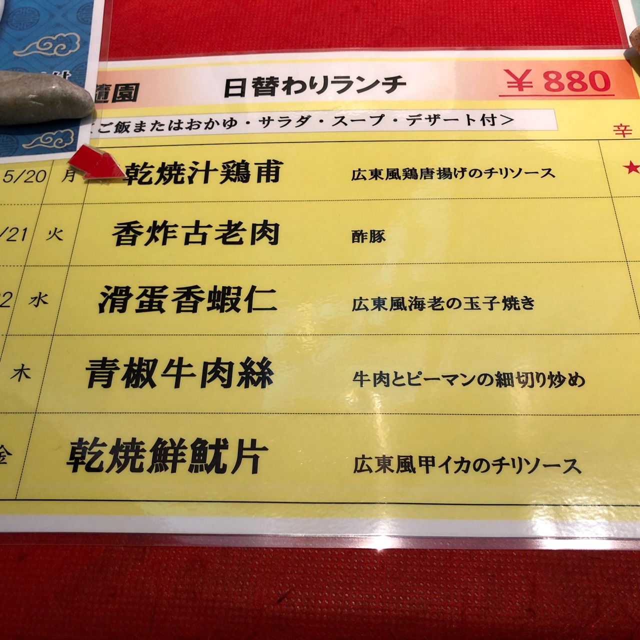 新山口駅から徒歩3分?、地下道を通って山口グランドホテルのB1F 「随園」さんで日替りランチ、今日月曜は広東風鶏唐揚げのチリソース(880円)をいただきました。ごはんかお粥かを選べます。今日はお粥にしました。デザートに杏仁豆腐が付いてきました。